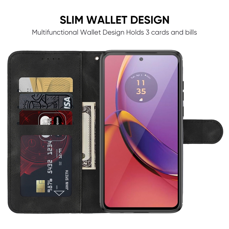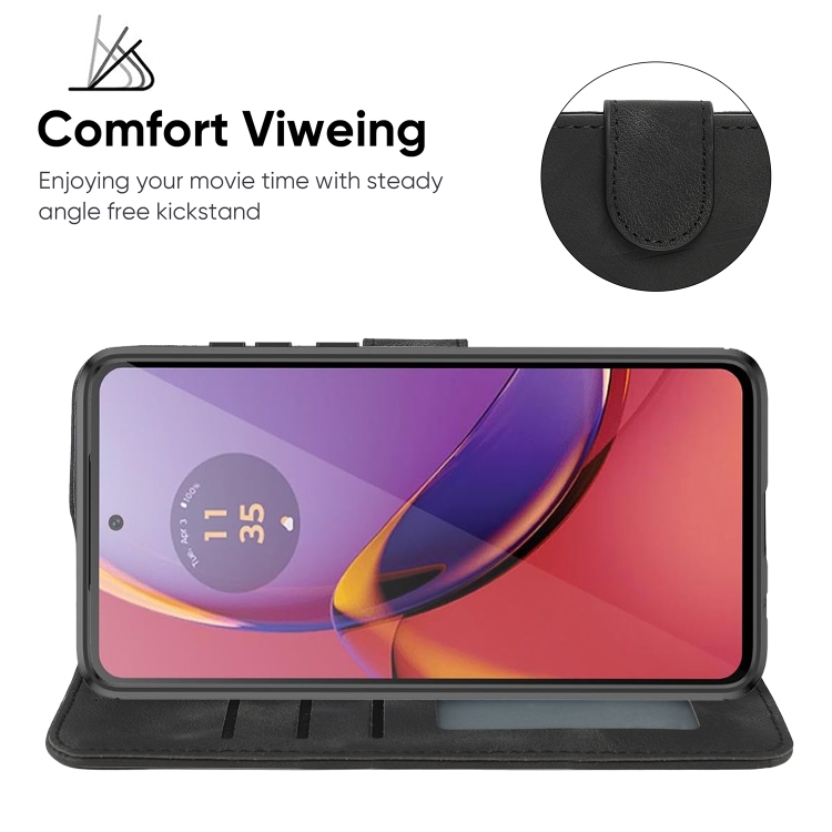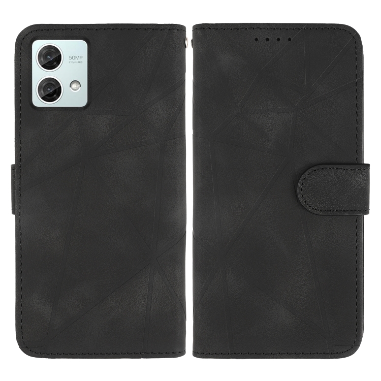 Funda de Cuero para Motorola Moto G84 con Líneas Geométricas y Tacto Suave (Negro)