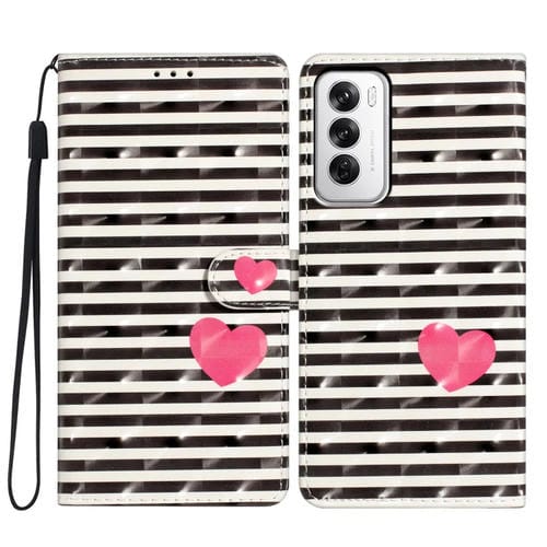 Funda de Cuero con Patrón 3D para Teléfono Oppo Reno12 Global (Corazón Rayado)