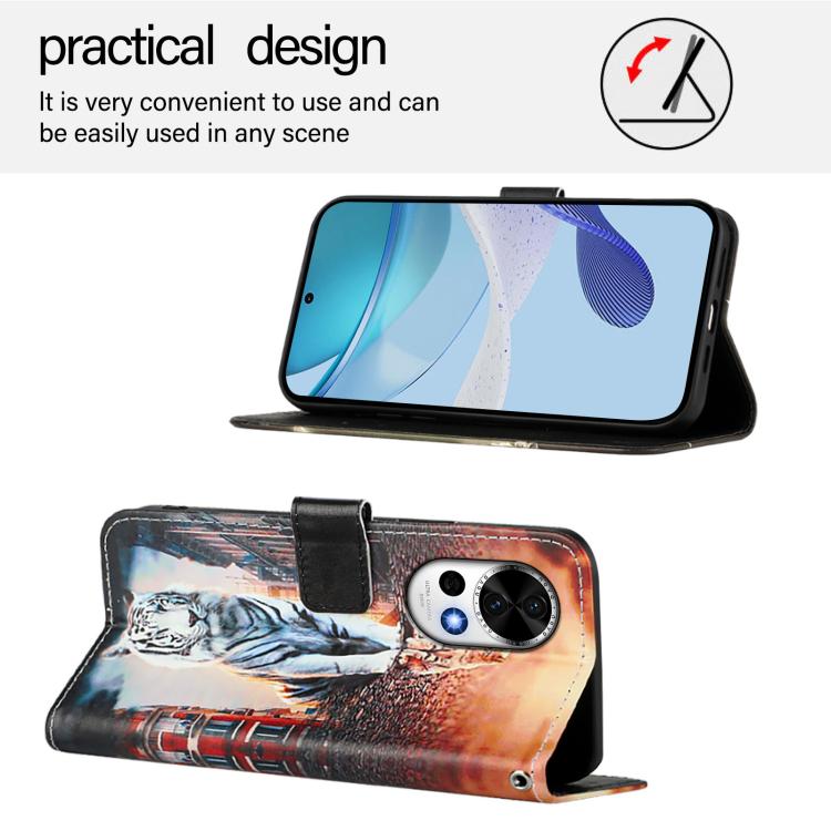 Funda de Cuero para Huawei Nova 13/Nova 12 con Dibujo de Gatos y Tigres