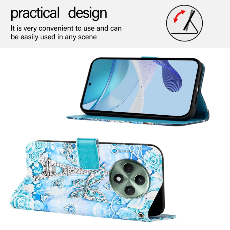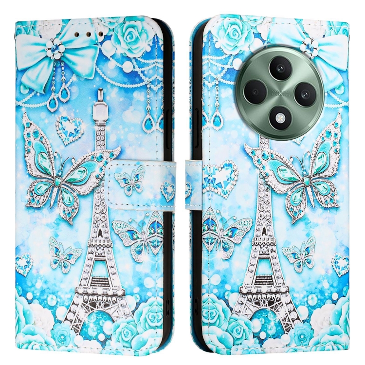Funda de Cuero con Patrón de Dibujo de Colores para Oppo Reno12 F Global (Mariposa En Forma de Torre)