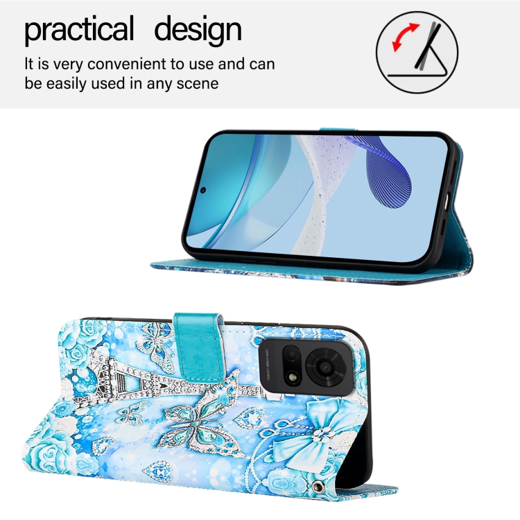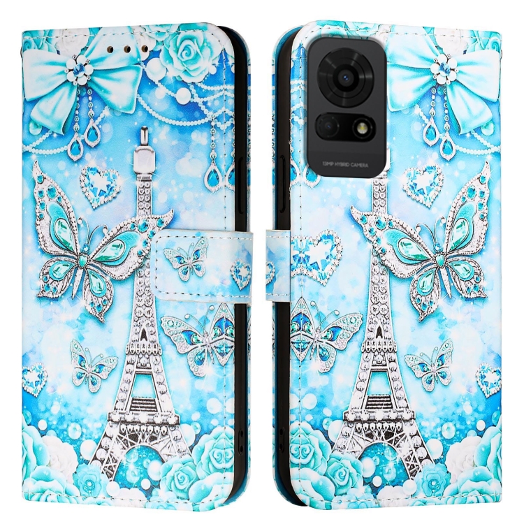 Funda de Cuero para TCL 50 Le 5G con Patrón de Mariposa y Torre de Colores
