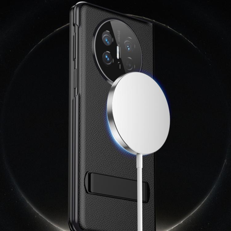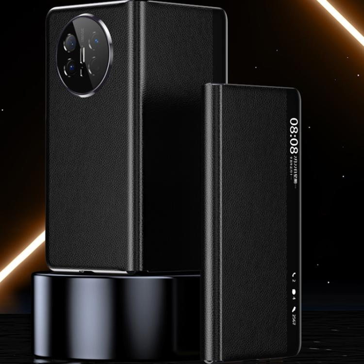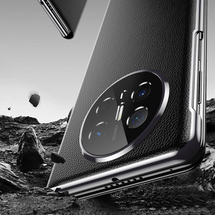 Funda de Cuero con Patrón de Lichi Galvanizado para Huawei Mate X6 con Ventana Inteligente y Magsafe (Azul)