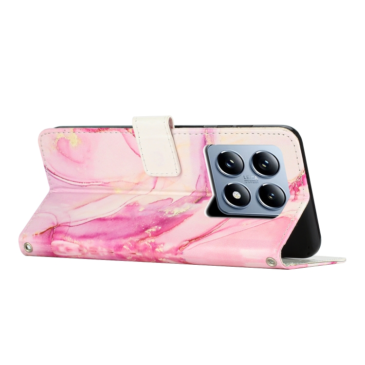 Funda De Cuero Con Patrón De Mármol Pintado Para Teléfono Xiaomi 14T Global (Oro Rosa)