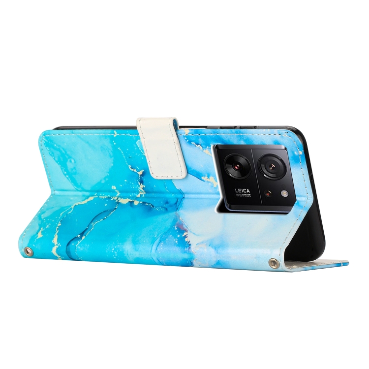 Funda de Cuero con Patrón de Mármol Pintado para Xiaomi 13T/13T Pro (Azul y Verde)
