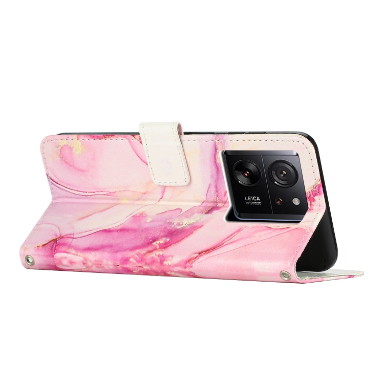 Funda de Cuero con Patrón de Mármol Pintado para Xiaomi 13T/13T Pro (Oro Rosa)