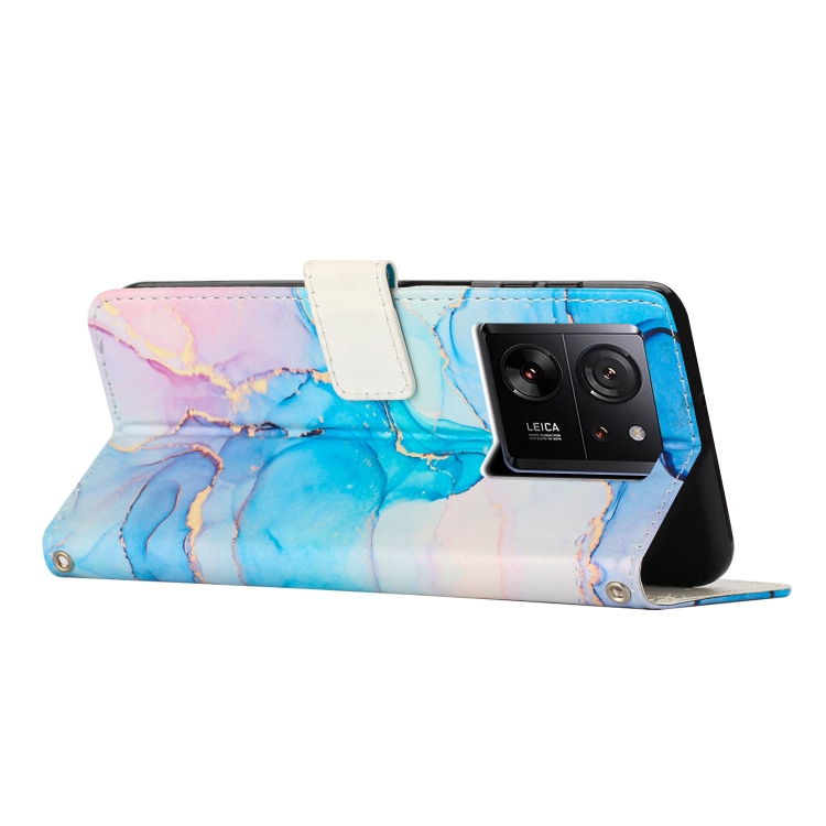 Funda de Cuero con Patrón de Mármol Pintado para Xiaomi 13T/13T Pro (Rosa y Verde)
