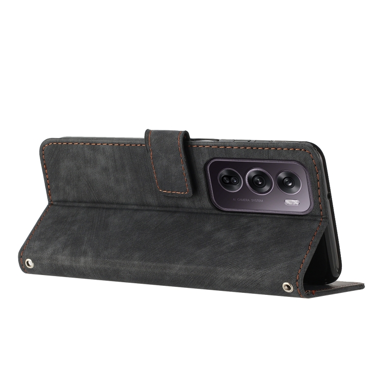 Funda de Cuero con Patrón de Rayas y Tacto Global para Oppo Reno12 Pro con Cordón Largo (Negro)