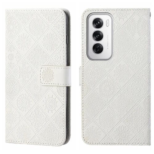 Funda de Cuero con Patrón En Relieve de Estilo Étnico Global para Oppo Reno12 5G (Blanco)