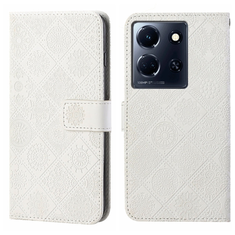 Funda de Cuero con Patrón en Relieve Estilo Étnico para Infinix Note 30 (Blanca)