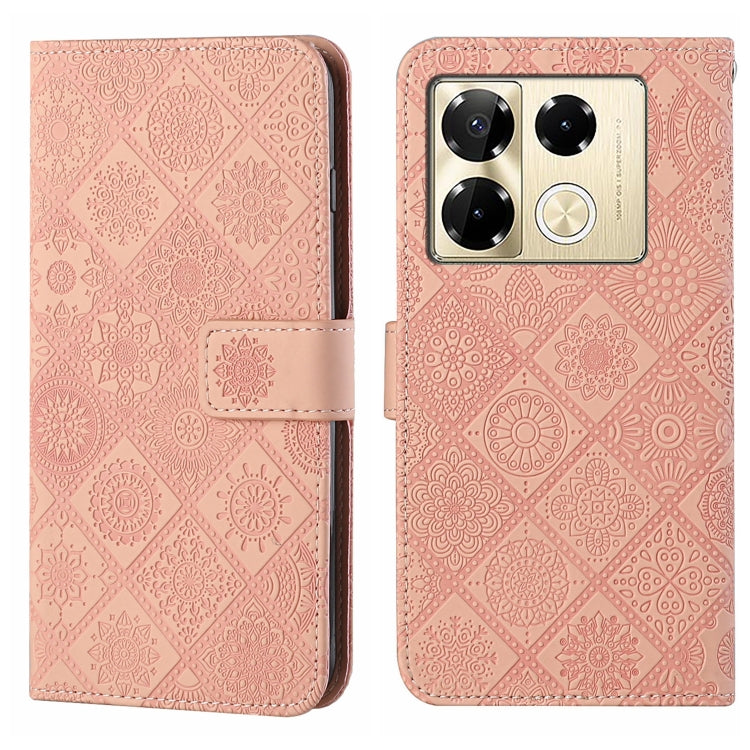 Funda de Cuero con Patrón en Relieve Estilo Étnico para Infinix Note 40 Pro (Rosa)