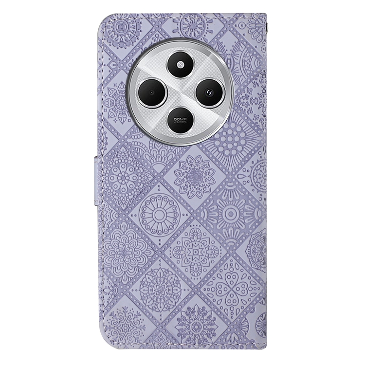 Funda de Cuero con Patrón En Relieve de Estilo Étnico para Redmi 14C 4G (Morado)