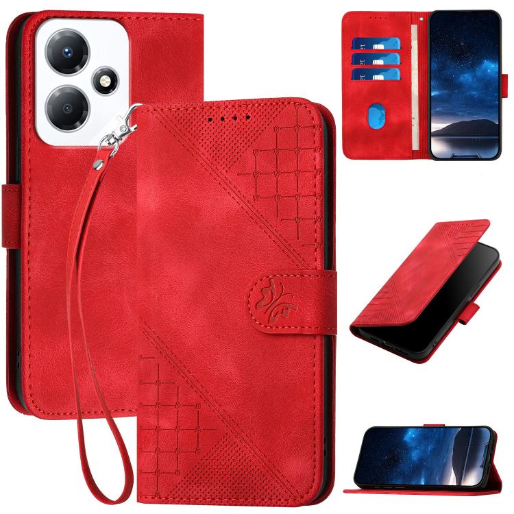 Funda de Cuero con Patrón en Relieve Mariposa y Cuadrícula NFC para Infinix Hot 30 Play (Rojo)