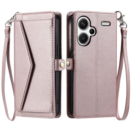 Funda de Cuero con Ranura para Múltiples Tarjetas y Billetera Global para Redmi Note 13 Pro+ 5G con Cordón (Oro Rosa)