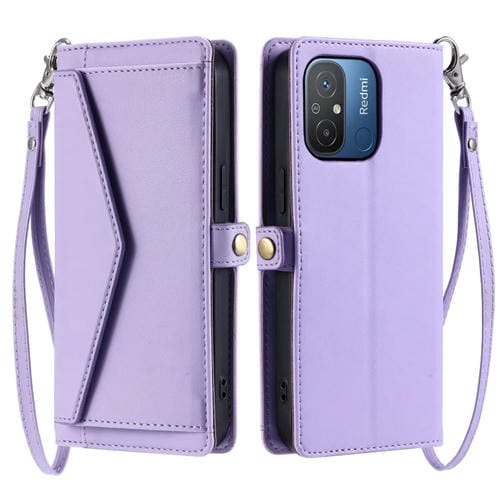 Funda de Cuero con Ranura para Múltiples Tarjetas y Cordón para Redmi 11A 4G Global Wallet (Morado)