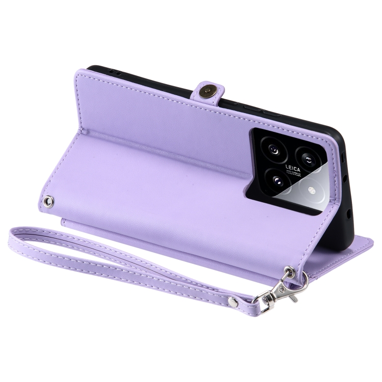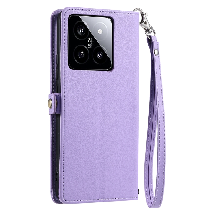 Funda De Cuero Con Ranura Para Múltiples Tarjetas Y Cordón Para Xiaomi 14 (Morado)