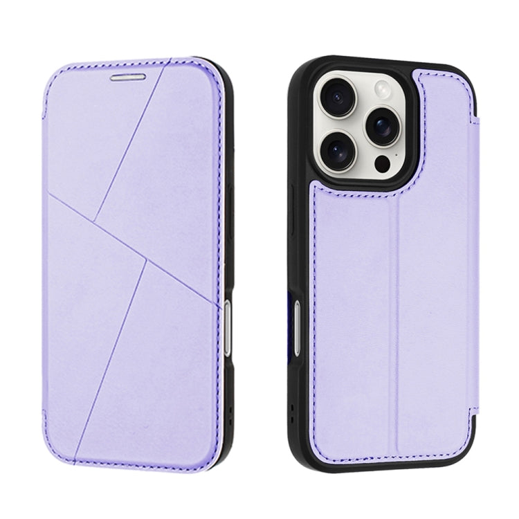 Funda de Cuero para iPhone 16 Pro Max con Ranuras para Tarjetas Rfid y Carcasa Magnética (Morado)