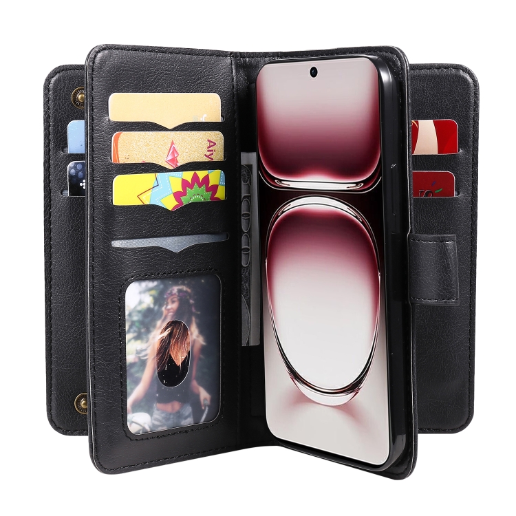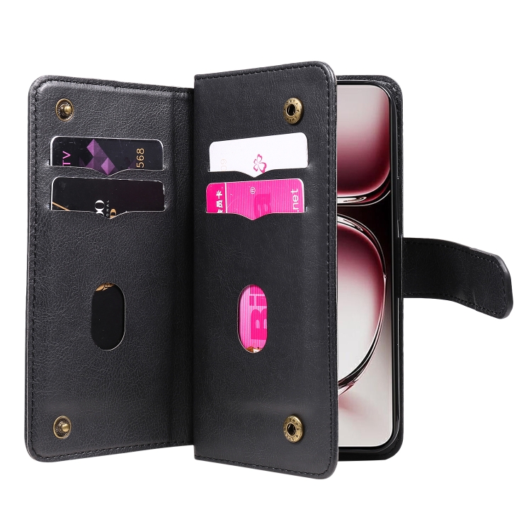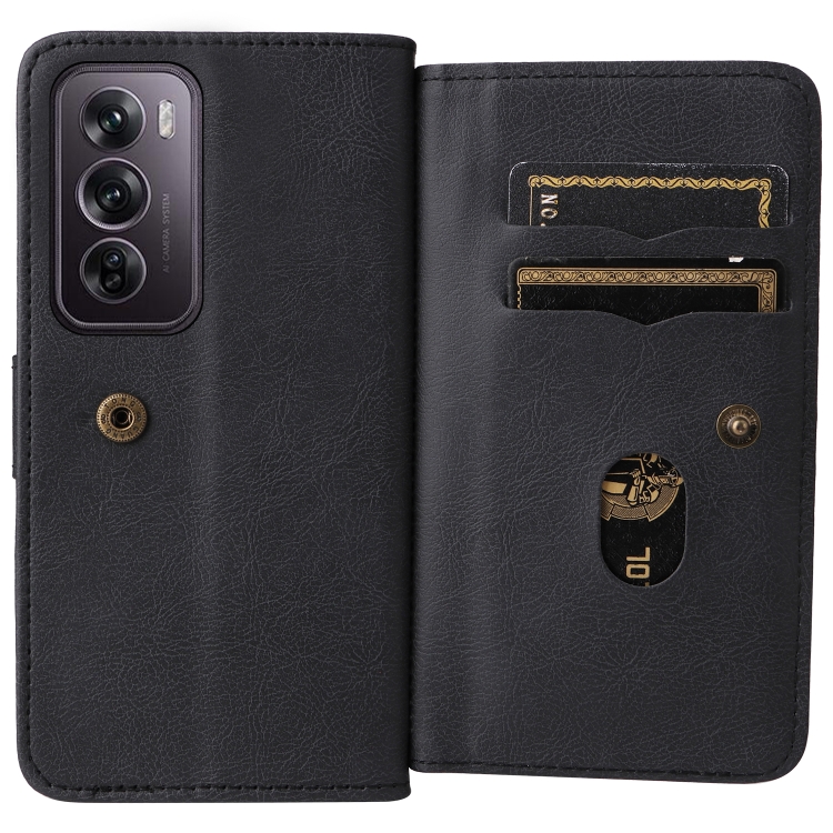 Funda de Cuero con Ranuras para Tarjetas y Billetera Multifunción Global para Oppo Reno12 Pro (Negro)