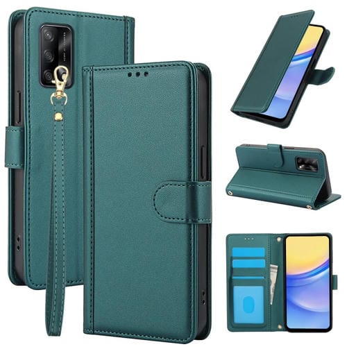 Funda de Cuero con Ranuras para Tarjetas y Diseño de Piel Sintética de Color Puro para Oppo A74 4G/A95 4G con Cordón Doble (Verde)