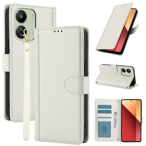 Funda de Cuero con Ranuras para Tarjetas y Doble Cordón para Redmi 13C 4G / Poco C65 / Poco M6 5G Skin Feel Pure Color (Blanco)