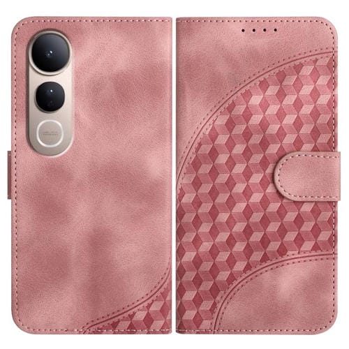 Funda de Cuero con Relieve de Cabeza de Elefante y Cordón para Vivo V50 Lite 4G/5G (Rosa)