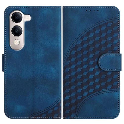 Funda de Cuero con Relieve de Cabeza de Elefante y Cordón para Vivo Y29S 5G / Y04 4G (Azul Real)