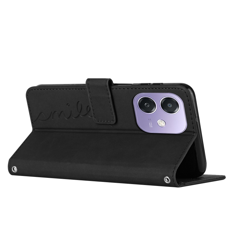Funda de Cuero con Relieve de Corazón para Oppo A3X 5G (Negra)