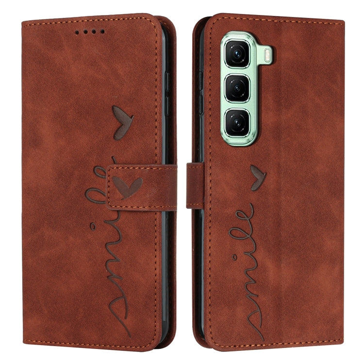 Funda de Cuero con Relieve de Corazón y Cordón Largo para Infinix Hot 50 Pro+ 4G (Marrón)