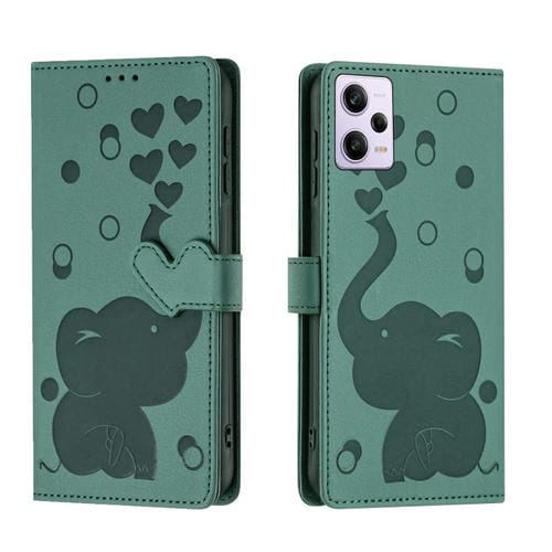Funda de Cuero con Relieve de Elefante de Dibujos Animados para Redmi Note 12 Pro 5G (Verde)