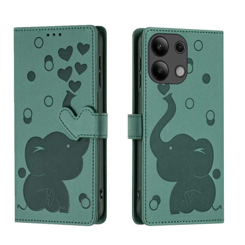 Funda de Cuero con Relieve de Elefante de Dibujos Animados para Redmi Note 13 4G (Verde)