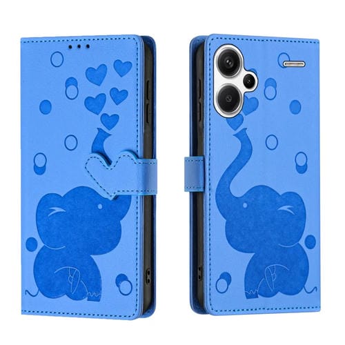 Funda de Cuero con Relieve de Elefante de Dibujos Animados para Redmi Note 13 Pro+ (Azul)