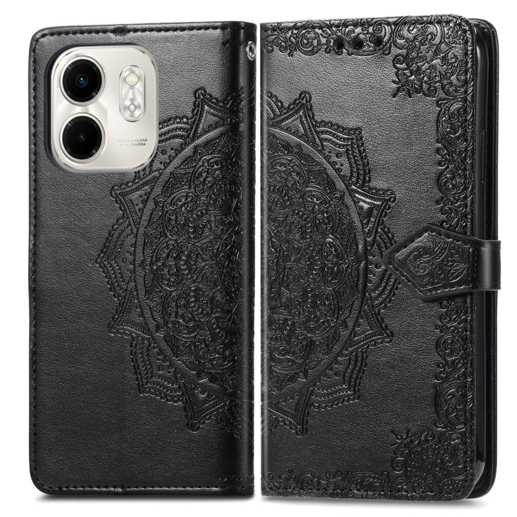 Funda de Cuero con Relieve Flor de Mandala para Infinix Smart 9 (Negra)