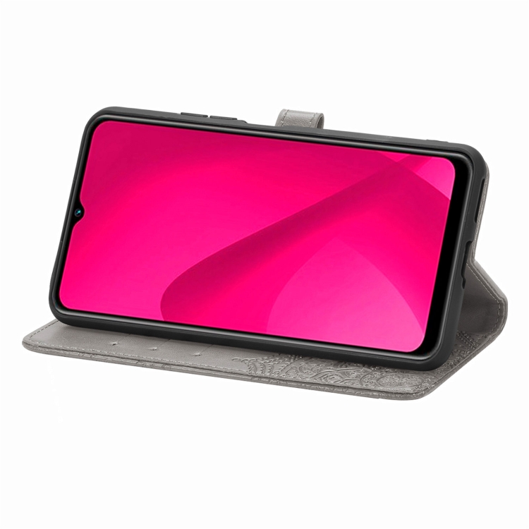 Funda de Cuero con Relieve Mandala para Teléfono T-Mobile Revvl 7 5G (Gris)