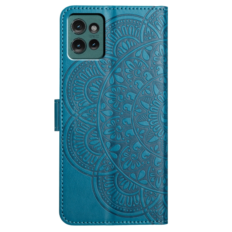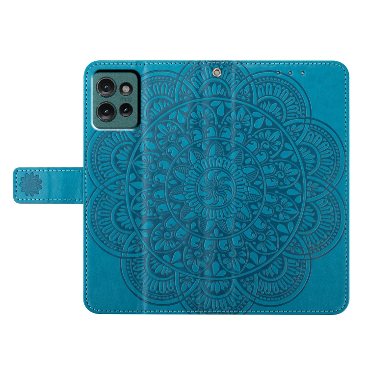 Funda de Cuero con Relieve Floral para Motorola Edge 50 5G (Azul)