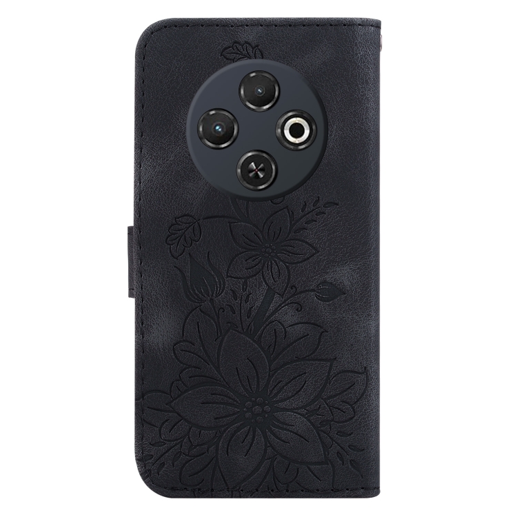 Funda Cuero con Relieve Lirio para Tecno Spark 30C (Negra)
