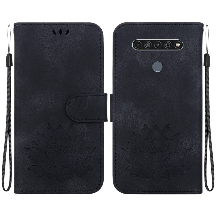 Funda de Cuero con Relieve de Loto para LG K61 (Negra)