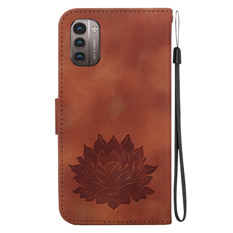 Funda de Cuero con Relieve de Loto para Nokia G21 y G11 (Marrón)