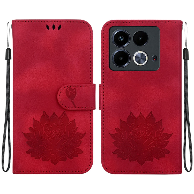 Funda de Cuero con Relieve de Loto para Infinix Note 40 4G (Rojo)