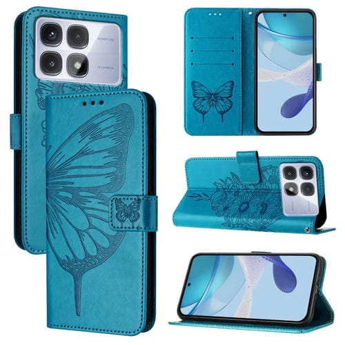 Funda de Cuero con Relieve de Mariposa para Redmi K70 Ultra 5G (Azul)