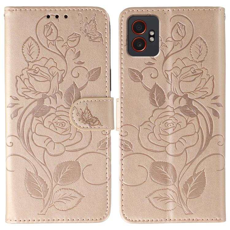 Funda de cuero con relieve de mariposa rosa para Samsung Galaxy XCover7 Pro (oro rosa)