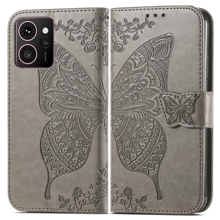 Funda de Cuero para Teléfono HMD Skyline con Relieve Mariposa y Flor (Gris)