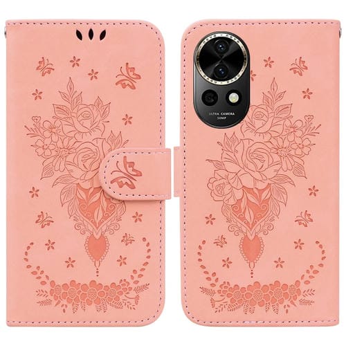 Funda de Cuero Huawei Nova 12 con Relieve de Mariposa y Rosa (Rosa)