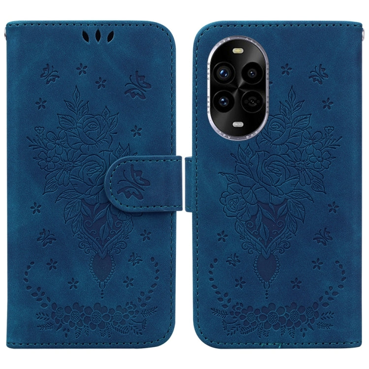 Funda de Cuero con Relieve Mariposa y Rosa para Huawei Nova 13 Pro (Azul)