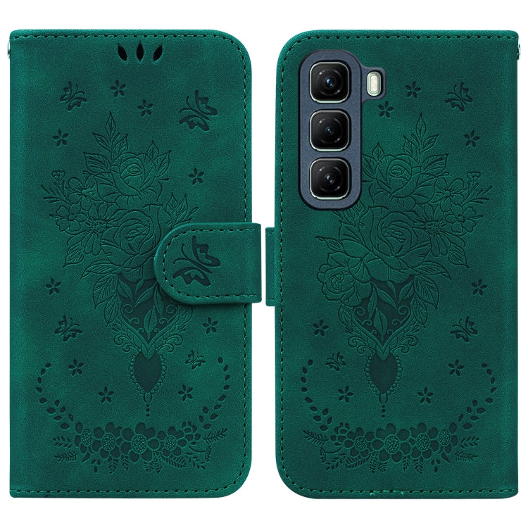 Funda de Cuero con Relieve Mariposa y Rosa para Infinix Hot 50 5G (Verde)