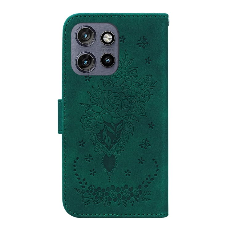 Funda de Cuero con Relieve Mariposa y Rosa para Motorola Edge 50 Neo 5G (Verde)