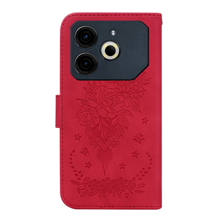Funda de Cuero para Tecno Pova 6 Neo con Relieve Mariposa y Rosa (Rojo)