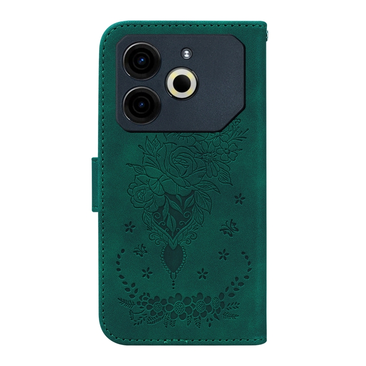 Funda de Cuero con Relieve Mariposa y Rosa para Tecno Pova 6 Neo (Verde)