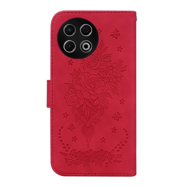 Funda de cuero con relieve de mariposa y rosa para Tecno Spark 30 Pro (roja)