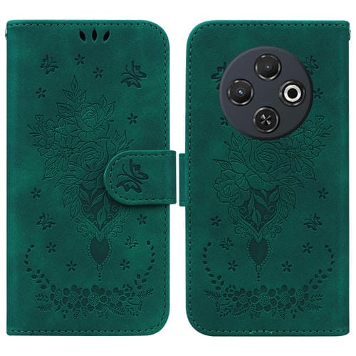 Funda de Cuero con Relieve Mariposa y Rosa para Tecno Spark 30C (Verde)