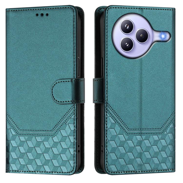 Funda de cuero con relieve de panal RFID para Xiaomi Civi 5 Pro 5G (verde pavo real)