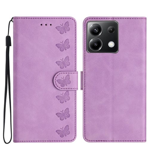 Funda de Cuero con Relieve de Siete Mariposas para Xiaomi Poco X6 (Morado)